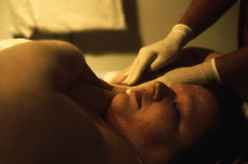 The artist is on bed, body covered by towel, face covered by steaming cloth; aesthetician enters and starts preparing tools. SHE is the artist ­ I am the canvas; I am, in her eyes, so deeply ‘flawed’ as to be a pointless, passionless job.